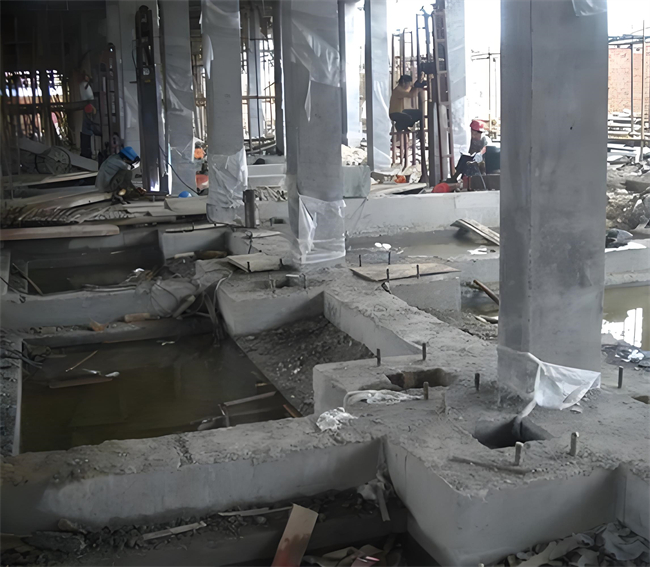 在施工過程中,首先需要進(jìn)行現(xiàn)場(chǎng)勘測(cè)與設(shè)計(jì),確定加固方案。隨后,在基礎(chǔ)上開鑿出壓樁孔和錨桿孔,利用錨桿反力,通過反力架和千斤頂將樁段從基礎(chǔ)壓樁孔內(nèi)逐段壓入土中,直至達(dá)到設(shè)計(jì)深度。最后,將樁與基礎(chǔ)連接在一起,形成穩(wěn)定的結(jié)構(gòu)體系。